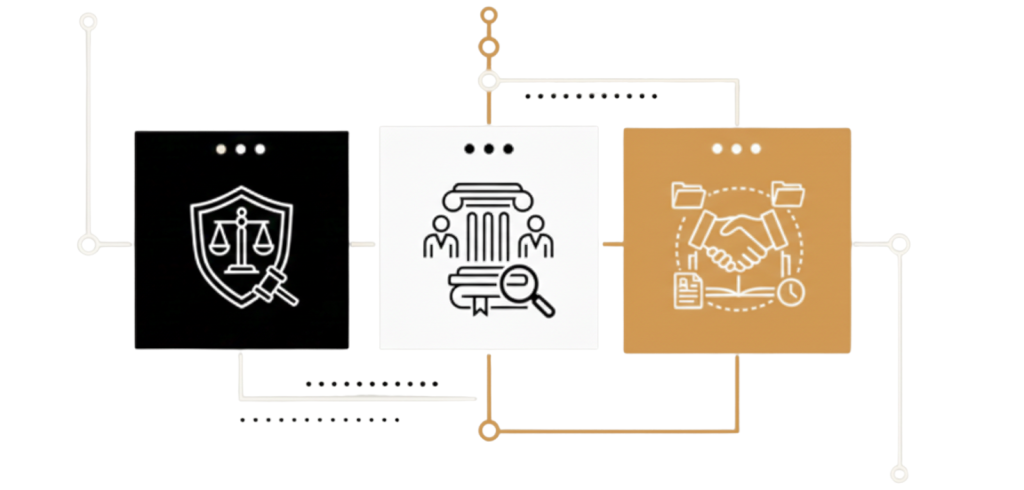 המשרד מספק שירות משפטי המבוסס על העיקרון של "תחנה אחת" ("One stop shop") , קרי, ליווי במגוון רחב של שירותים משפטיים תחת קורת גג אחת. בהתאם, לקוחות המשרד בוחרים להסמיך את המשרד כ"משרד הבית" שלהם באופן שהמשרד מלווה את עסקיהם (ואף אירועים בחייהם הפרטיים) בכל תחומי המשרד: עריכת חוזים, דיני עבודה, תביעות כספיות, אירועים נזיקיים ובירורי ביטוח, הליכי הוצאה לפועל, ייעוץ שוטף ועוד.