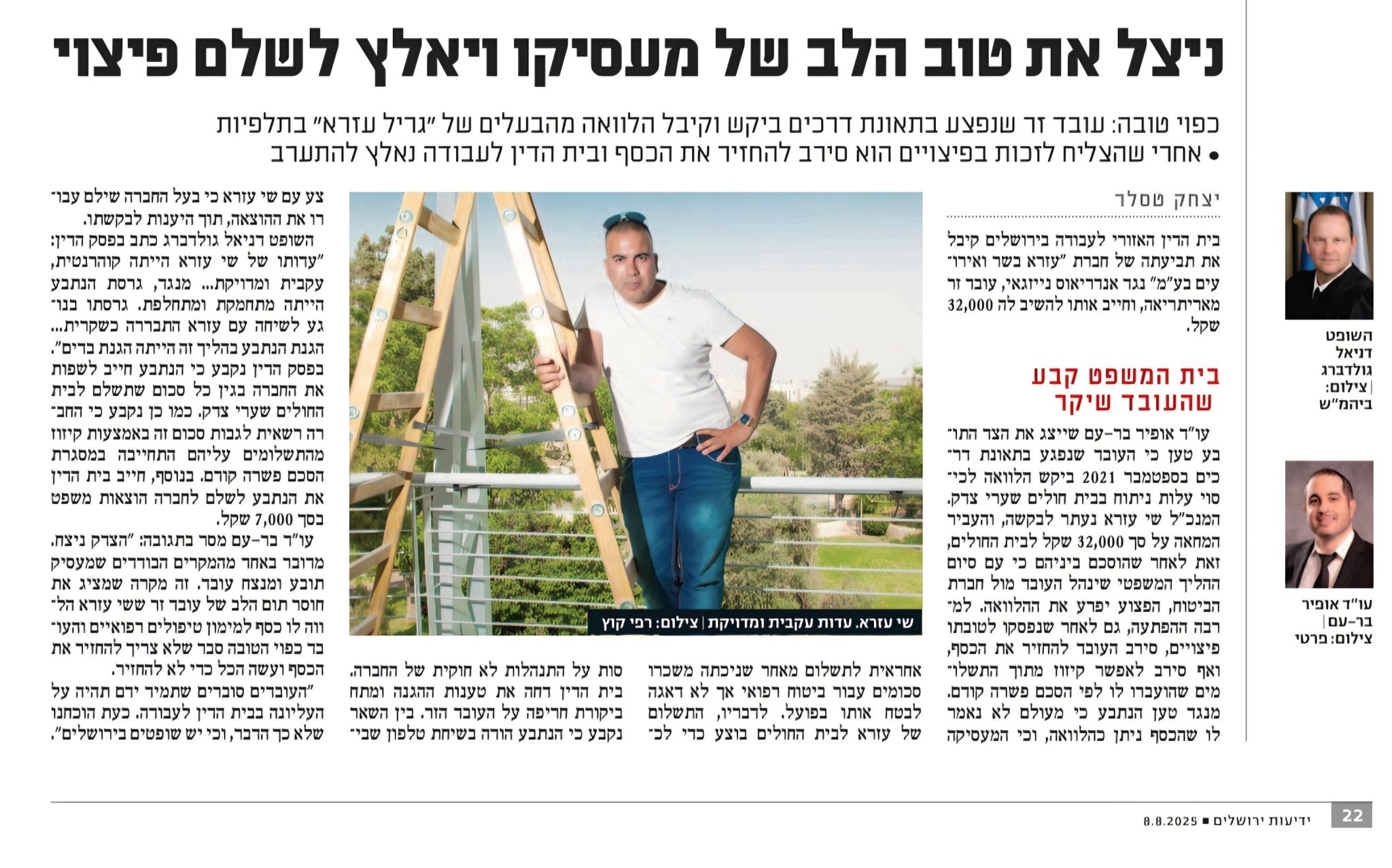 Itzik PinchasTrustindex מוודא שהמקור המקורי של הסקירה הוא Google. מהרגע הראשון קיבלתי ליווי צמוד, ייעוץ מקצועי ותחושה אמיתית של אכפתיות. הכל הוסבר בסבלנות, עם זמינות מלאה ויחס אישי, בלי להרפות עד שהגענו לתוצאה הרצויה :) ממליץ מכל הלב! lev goldshteinTrustindex מוודא שהמקור המקורי של הסקירה הוא Google. אופיר בר-עם מקצוען אמיתי! הוא נותן שירות אישי וסופר מקצועי! הוא זמין מאוד לכל מה שצריך וכבר תקופה מאוד משמעותית מלווה אותי אישית בכל שאלה אם ברמה האישית וגם ברמה העיסקית, אני ממליץ עליו בחום! והוא לא מאכזב! רק לפני כמה ימים הוציא חבר קרוב שהמלצתי לו עליו מתביעה של מיליון שקל מעובד!!! בכל מה שקשור לדיני עבודה ולא רק, אין מישהו אחר, חבל על החיפושים והסיכון ליפול על מישהו שלא מאה אחוז, תיפנו אליו ותקבלו את כל האופציות על השולחן מובטח! ממליץ ממליץ ממליץ! נדב שלוTrustindex מוודא שהמקור המקורי של הסקירה הוא Google. אני ממליץ/ה על עו״ד אופיר מקצועי, אמין וקשוב! קיבלתי שירות משפטי ברמה גבוהה, יחס אישי ותוצאות מהירות. אם אתם מחפשים עורך דין שיודע לטפל ביעילות ובמקצועיות זו הבחירה הנכונה! אבי יעלTrustindex מוודא שהמקור המקורי של הסקירה הוא Google. אופיר ליווה אותי במספר הליכים משפטיים, ליווי מקצועי ומסור לאורך כל הדרך. שירות ברמה גבוהה מאוד עם זמינות מרשימה. תודה ענקית על שירות אדיב, מקצועי ובלתי מתפשר עד לתוצאה. מומלץ בחום! שיר ברקTrustindex מוודא שהמקור המקורי של הסקירה הוא Google. עו"ד סופר מקצועי! אופיר אנושי וממוקד, מעניק טיפול מסור וליווי עם זמינות לכל שאלה. מרוצה מאוד וממליצה מכל הלב. אסף שראלTrustindex מוודא שהמקור המקורי של הסקירה הוא Google. חריף, מקצוען ויצירתי! מומלץ בחום! חנוך בן דרורTrustindex מוודא שהמקור המקורי של הסקירה הוא Google. זכיתי מעו"ד אופיר בר-עם לליווי מקצועי, יסודי ואנושי לאורך כל הדרך. הוא הסביר לי כל שלב בצורה ברורה ומרגיעה. מעבר למקצועיות היחס היה אישי, והתחושה הייתה שיש על מי לסמוך באמת. הטיפול בתיק היה מדויק, ענייני ויעיל – והתוצאה דיברה בעד עצמה. ממליץ בחום לכל מי שמחפש עורך דין רציני, אמין ומסור. שחר ארבלTrustindex מוודא שהמקור המקורי של הסקירה הוא Google. אני ממליץ בחום על אופיר לכל נושא של דיני עבודה ואף מעבר! הוא ייצג אותי בתביעה מול מעסיק, ובזכות הירידה שלו לפרטים הקטנים קיבלתי פיצוי גם על רכיבים כמו עמלות ושעות עבודה שלא ידעתי שמגיעים לי. שירות מקצועי, יסודי ועם שליטה מוחלטת בחוק. אלייה בן לולוTrustindex מוודא שהמקור המקורי של הסקירה הוא Google. תודה לאופיר על שירות מקצועי, מהיר והדוק חיים אליהוTrustindex מוודא שהמקור המקורי של הסקירה הוא Google. עורך דין אופיר מקצועי מאוד שירותי וזמין ליווה אותנו לכל אורך הדרך השיג לנו את המקסימום מהתיק בתשלום הוגן לעומת עורכי דין אחרים ממליץ בחום